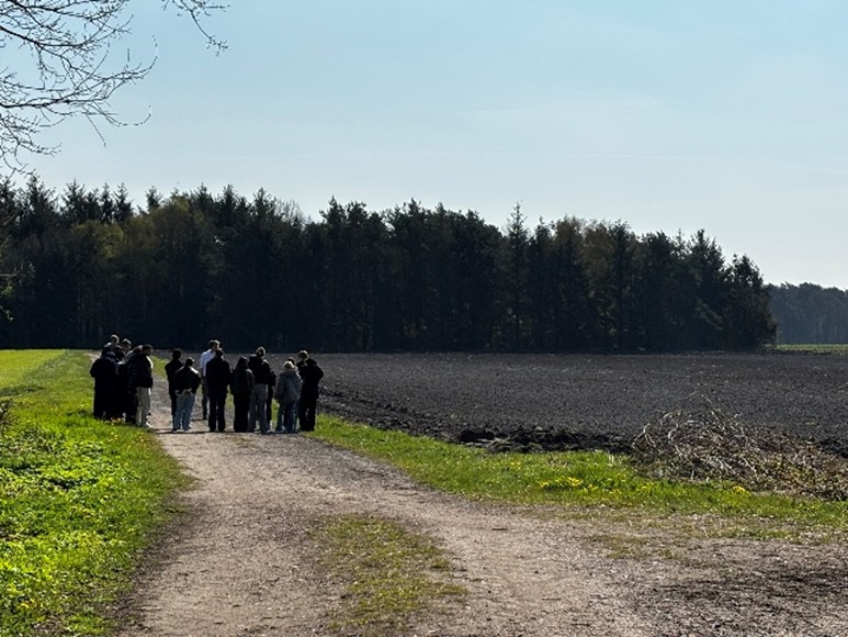 Es folgten einige weitere Stationen, vorbei an einem frisch gepflügten Feld, was im Frühling fast idyllisch wirkt. Die Teamer berichteten von grausamen Szenen, die sich genau dort abgespielt haben müssen. Kurz vor dem Ende des Krieges 1945,  brachten die Nazis Häftlinge aus anderen Lagern nach Sandbostel, wo circa 3.000 von ihnen starben.